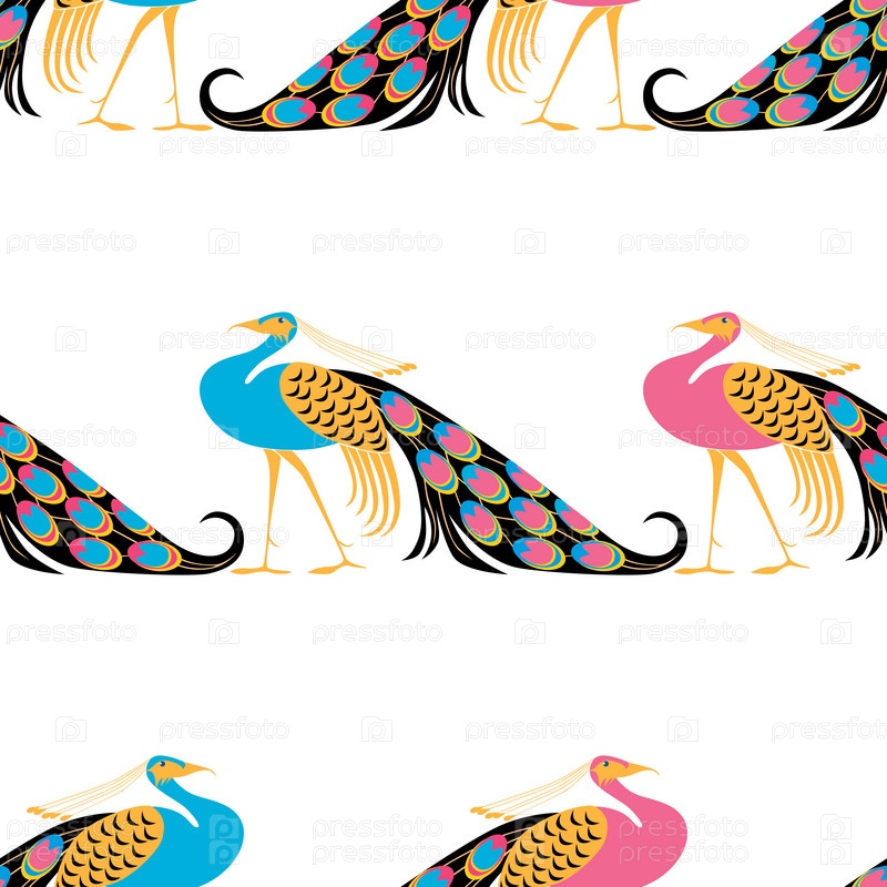Бесшовный фон из мультяшных стилизованных павлинов