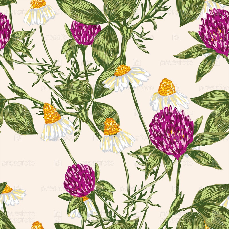 Бесшовный фон из ромашек и клевера