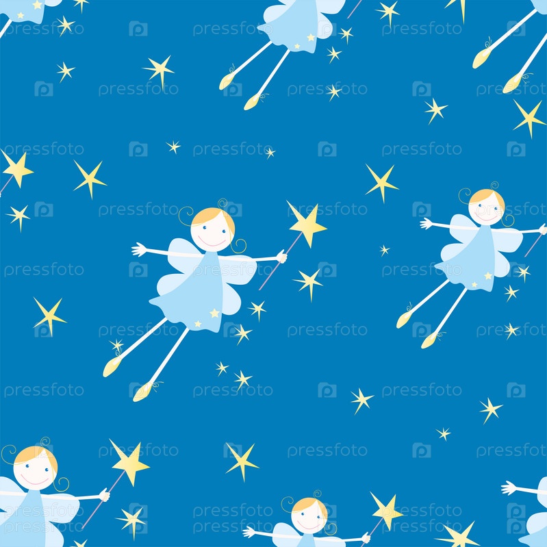 Бесшовный рисунок летающих эльфийских девушек в звездную ночь