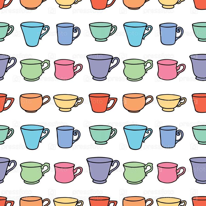 Бесшовный рисунок набора различных цветных чашек чая