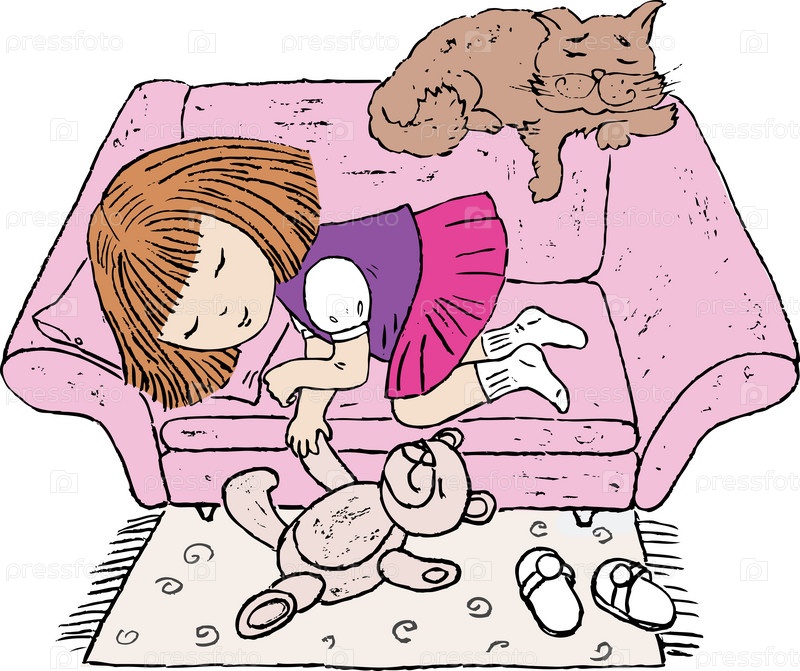 Векторное изображение маленькой девочки, спящей после игры