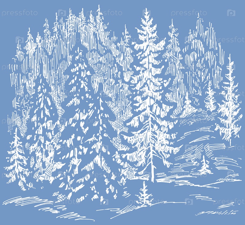 Векторная иллюстрация замерзшего елового леса в декабре