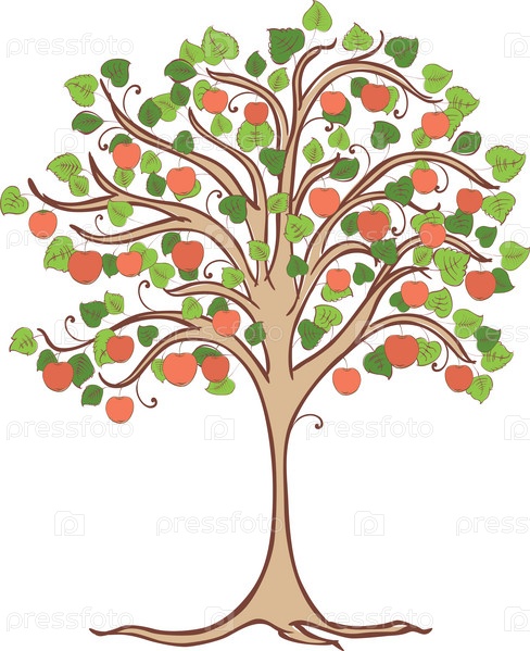 Векторное изображение яблони со спелыми красными яблоками