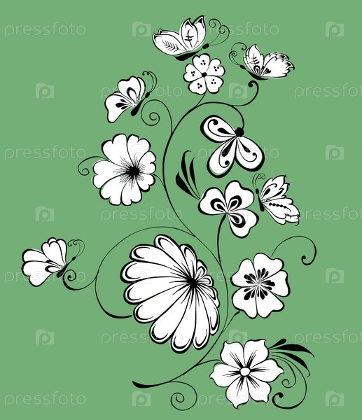 Векторное изображение декоративного цветка с бабочками