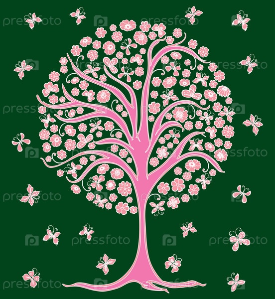 Векторное изображение декоративного розового дерева, цветущего весной