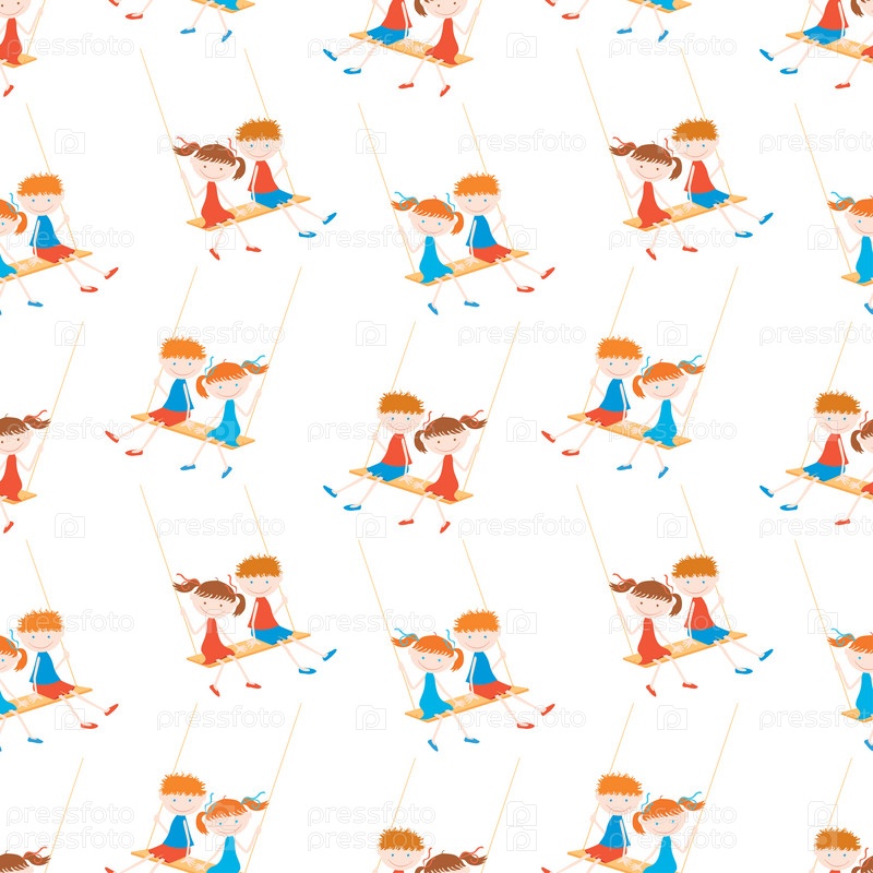 Картина веселых детей на качелях