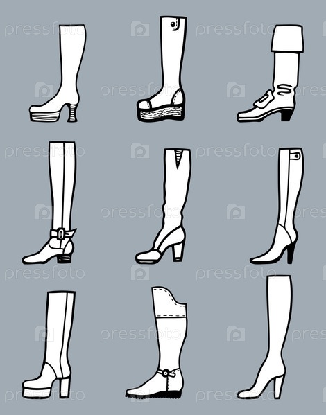 Набор различных высоких женских сапог