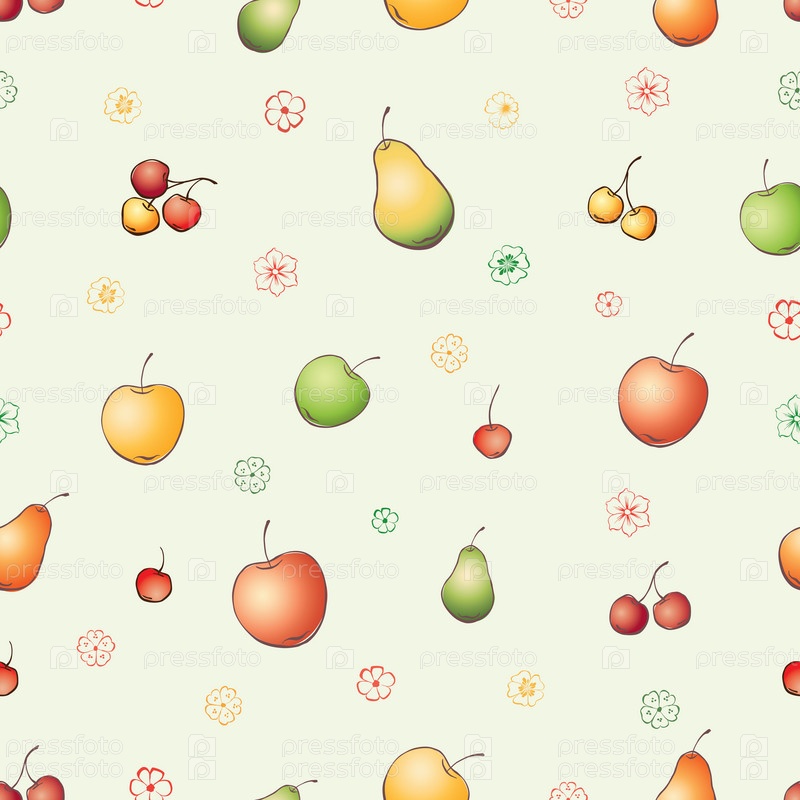 Бесшовный фон из нарисованных фруктов и цветов