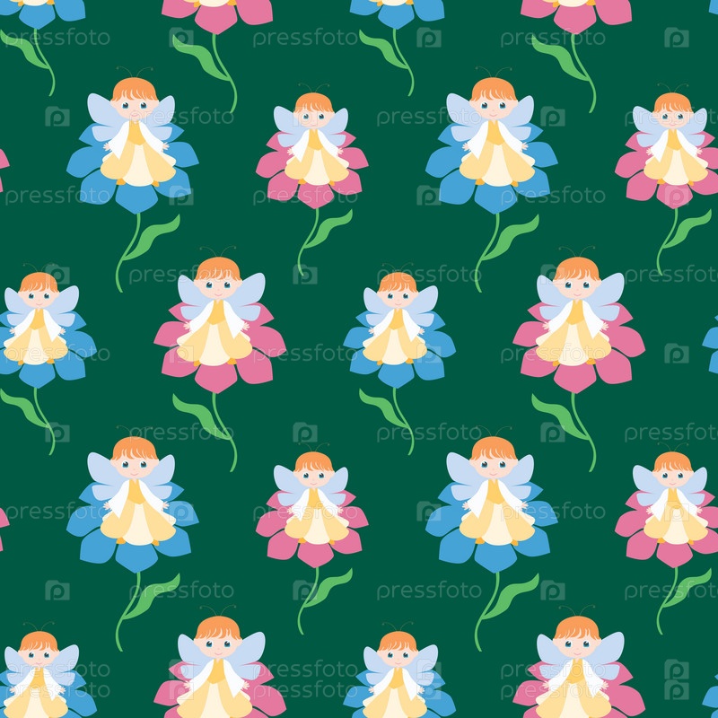 Бесшовный фон девушек-эльфов, сидящих на цветах