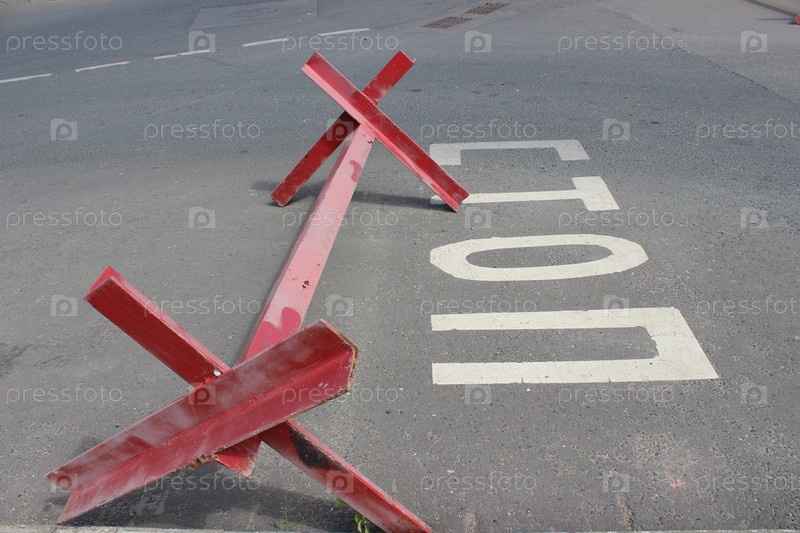 Барьер перед КПП. Блокировка трафика. Надпись «СТОП» на русском языке