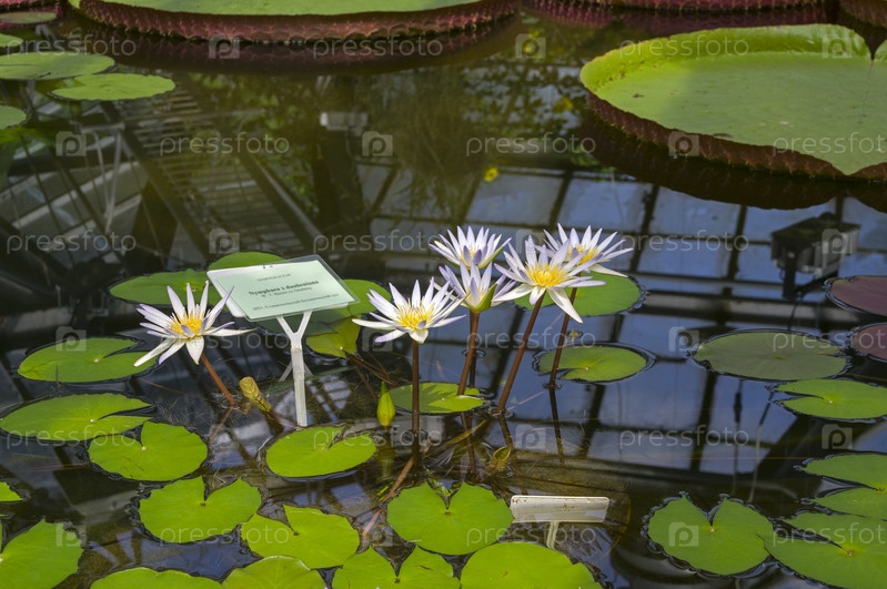Цветущая лилия сорта Нимфея Добеньяна в водной теплице