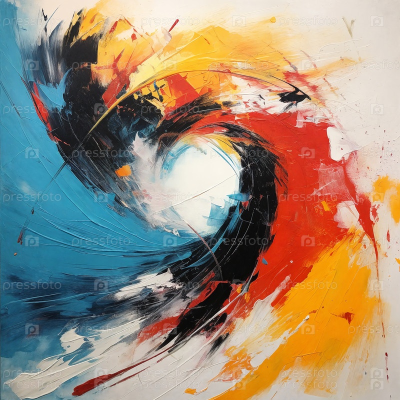 Абстрактная современная живопись всплеск завораживает яркими цветами и динамичными мазками, пульсируя энергией и вызывая ощущение пленительного хаоса