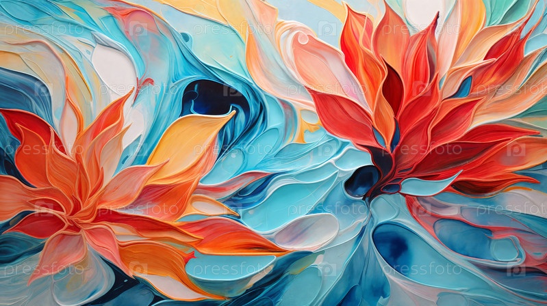 Абстрактные мраморные цветы, нарисованные акрилом, распускаются, смешивая яркие оттенки в завораживающем изображении