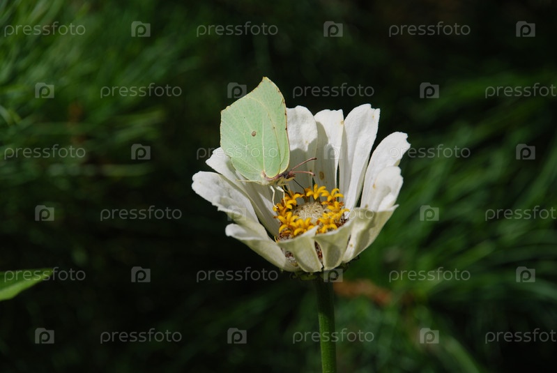Бабочка сидит на цветке циннии
