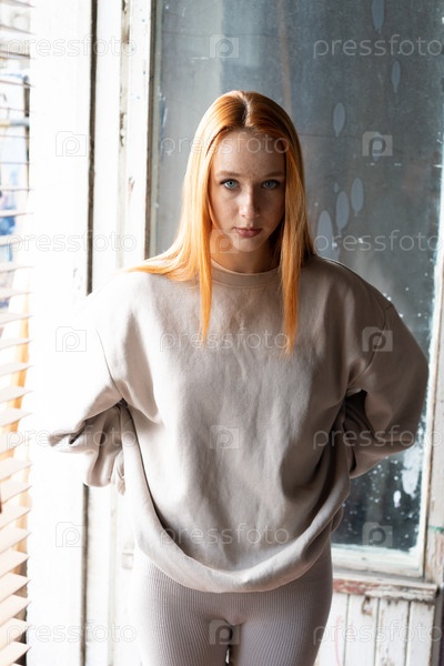 Портрет молодой красивой женщины с рыжими волосами в студии