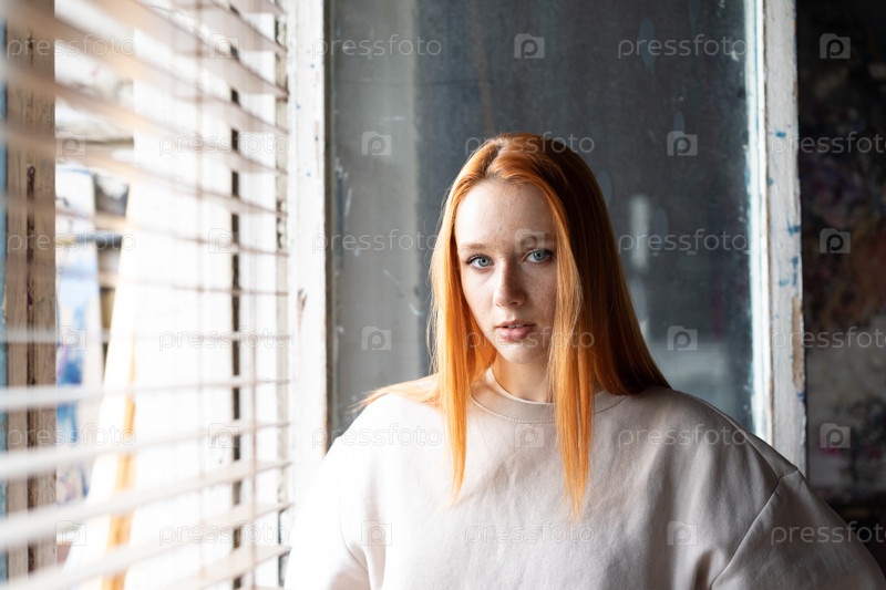 Портрет молодой красивой женщины с рыжими волосами в студии