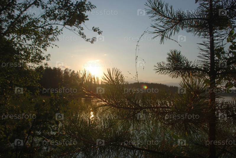 Закат над лесом на озере