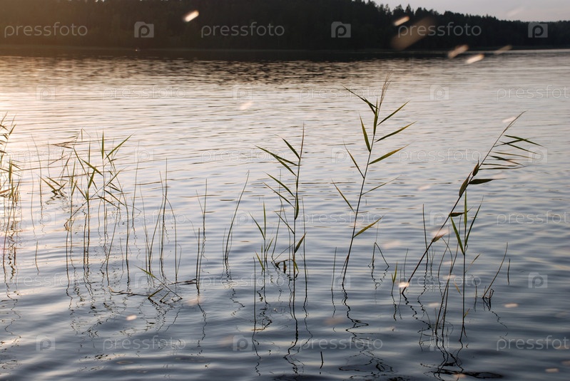 Длинные неровные тени от камыша на воде