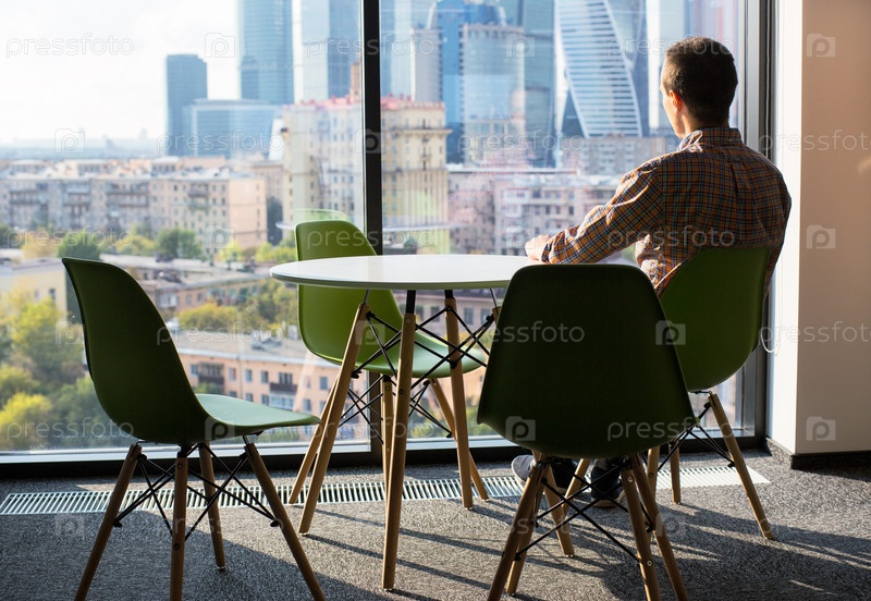 Мужчина смотрит в окно