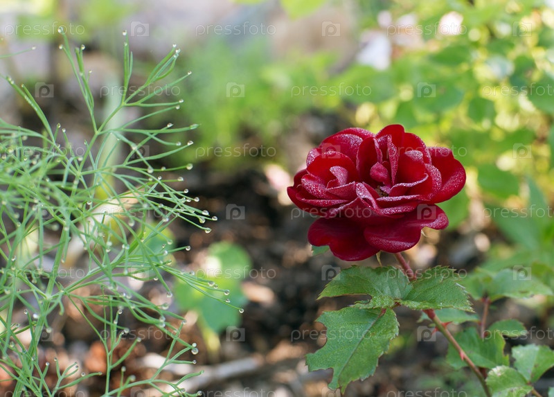 Красная роза в росе