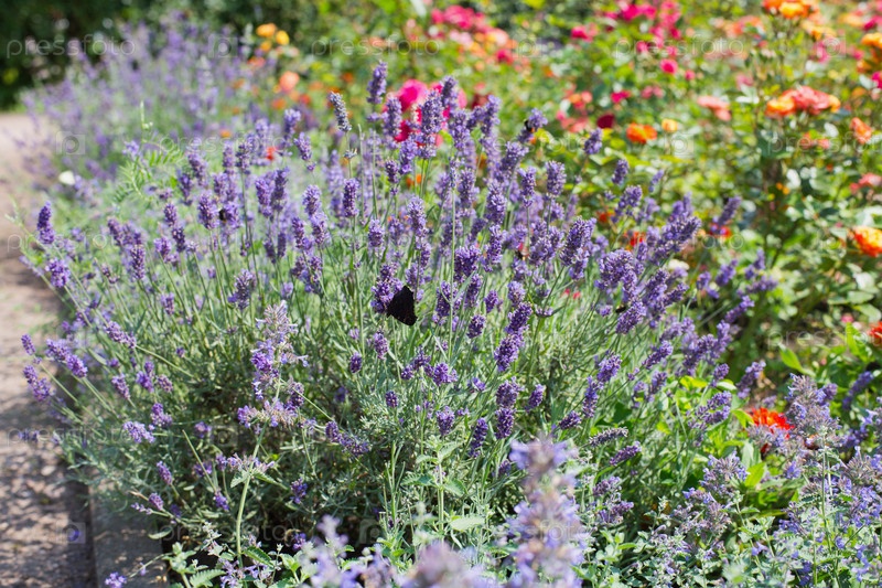 Лаванда и розы в саду