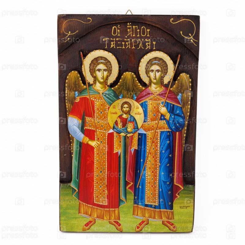Икона с Архангелами Михаилом и Гавриилом на дереве (объемная резьба)