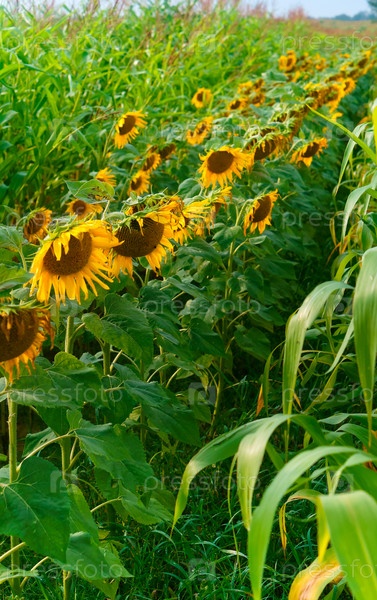 Красивые подсолнухи, растущие в поле
