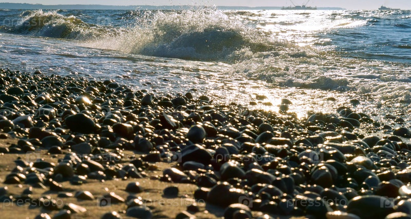Волна разбивается о скалы, волны на Балтийском море