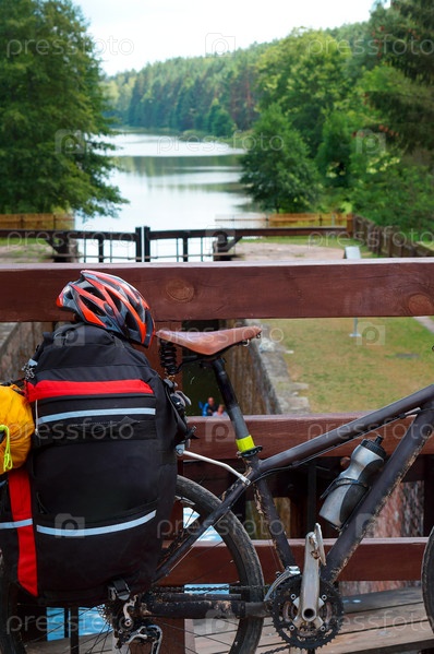 Велосипедист на мосту, путешествие на велосипеде