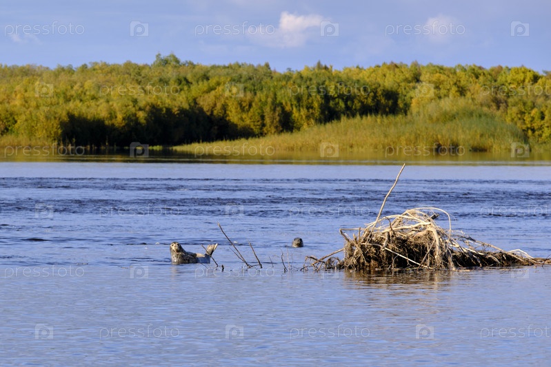 Молодые нерпы в реке