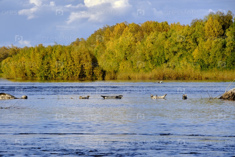 Тюлени на отмели. (нерпа)
