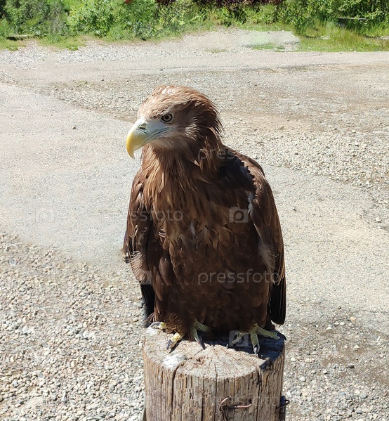 Орел сидит на пне