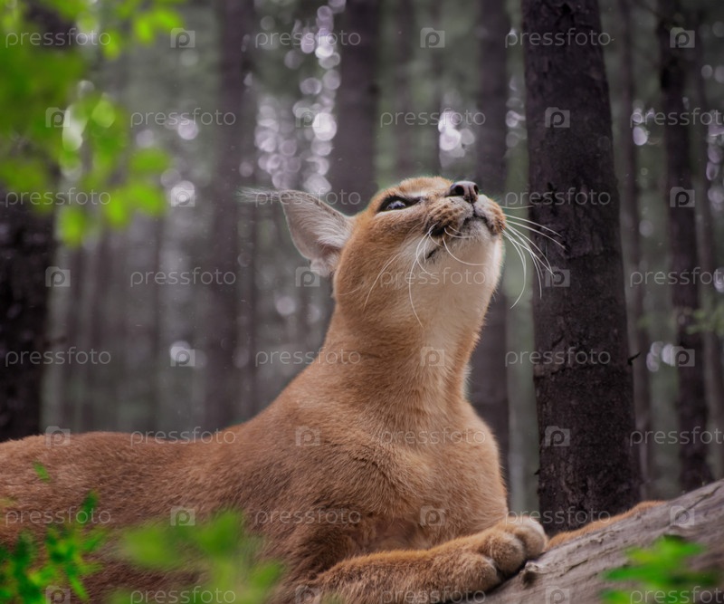 дикая кошка каракал степная рысь в лесу крупный план