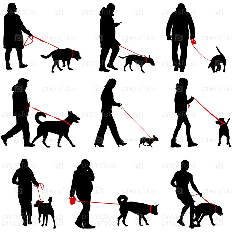 Установите силуэт людей и собаки на белом фоне