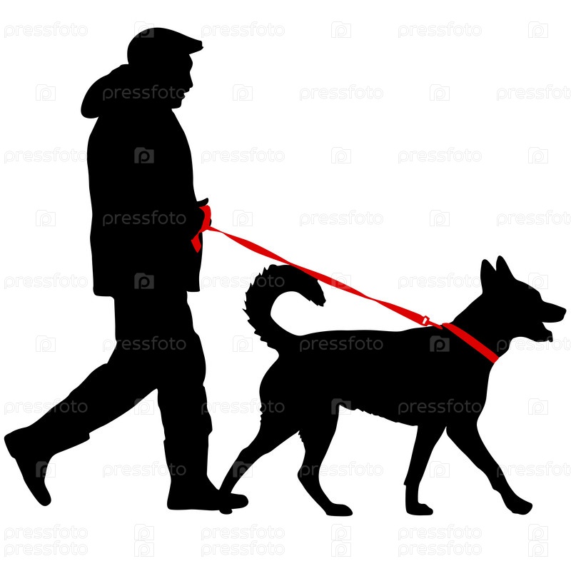 Силуэт человека и собаки на белом фоне