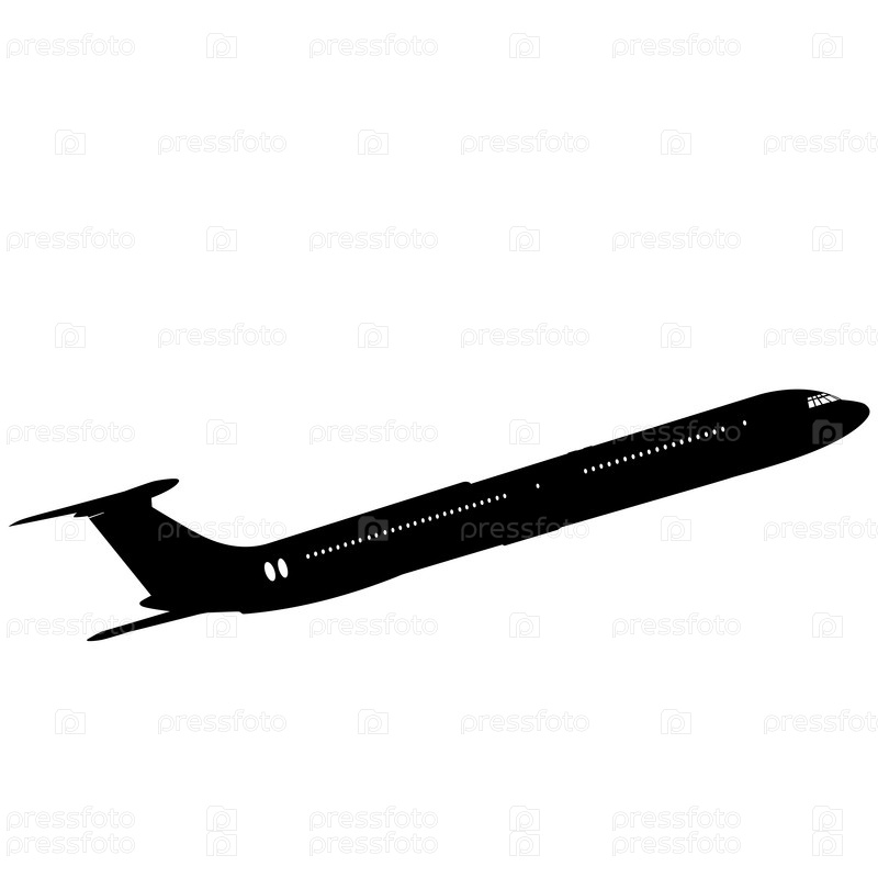 Силуэт пассажирского самолета на белом фоне