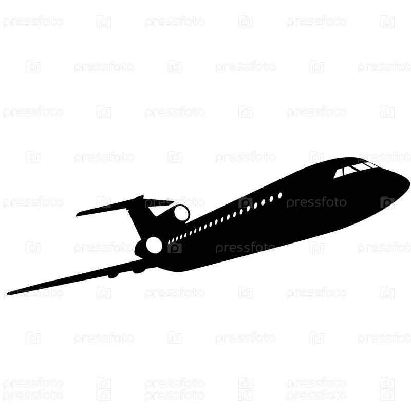 Силуэт пассажирского самолета на белом фоне