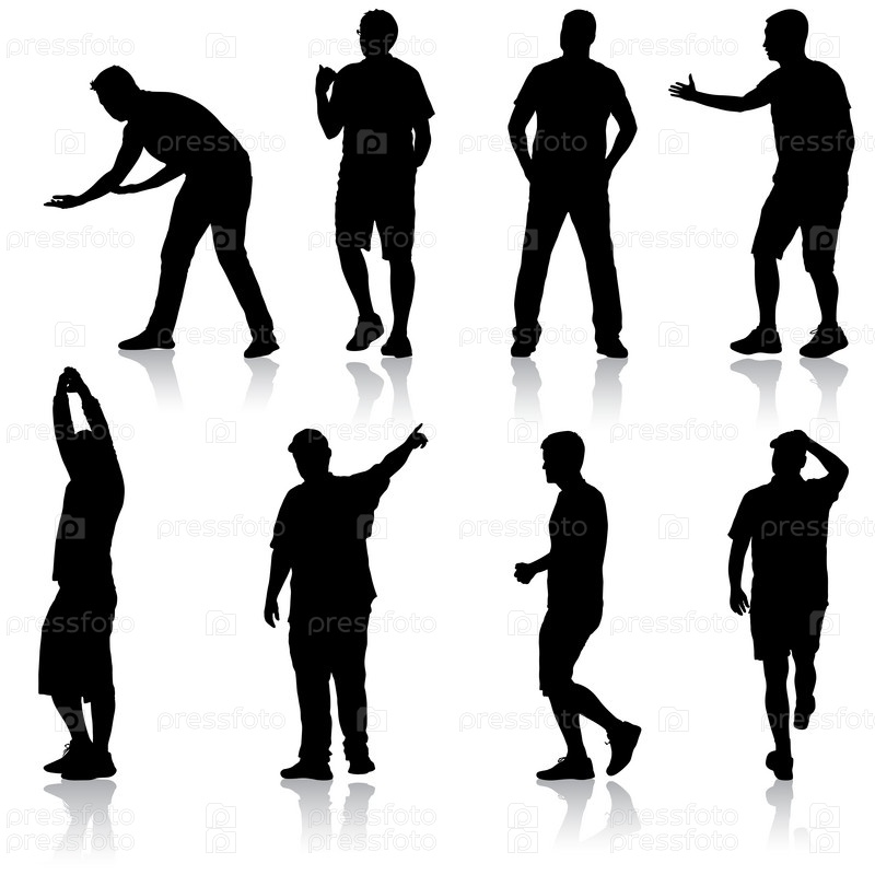 Силуэт группы людей, стоящих на белом фоне