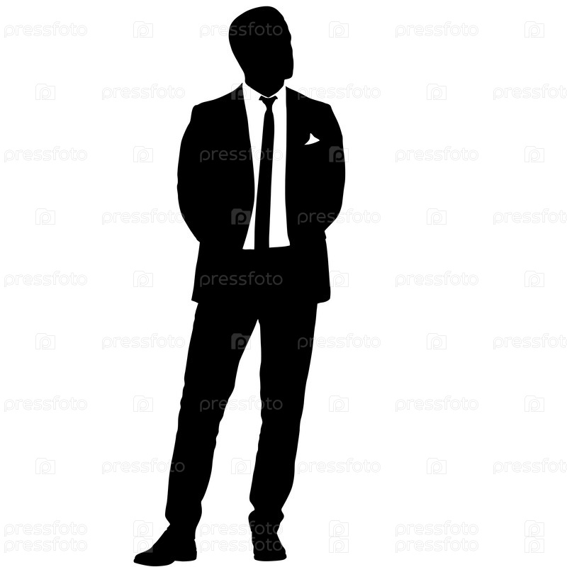 Силуэт бизнесмена в костюме с галстуком на белом фоне