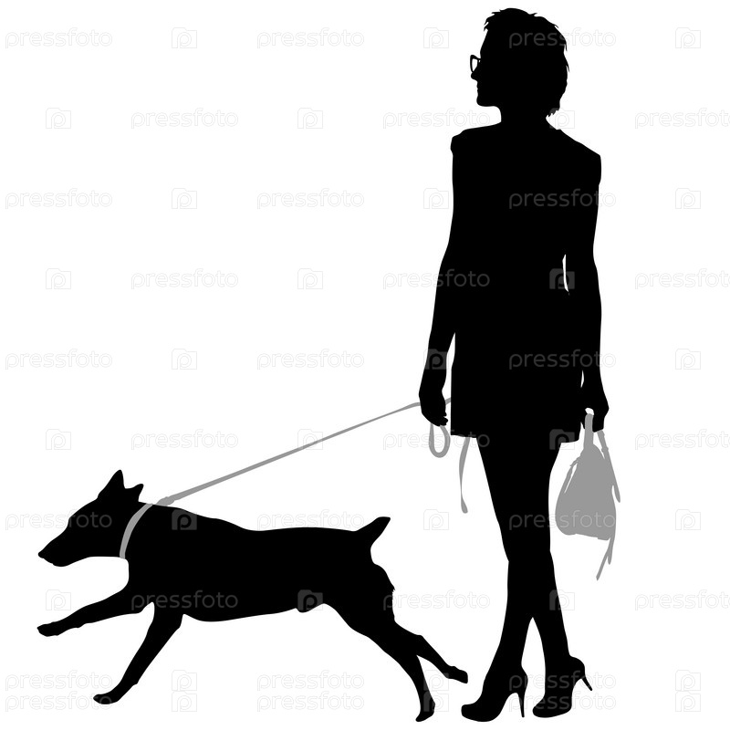 Силуэт женщины и собаки на белом фоне