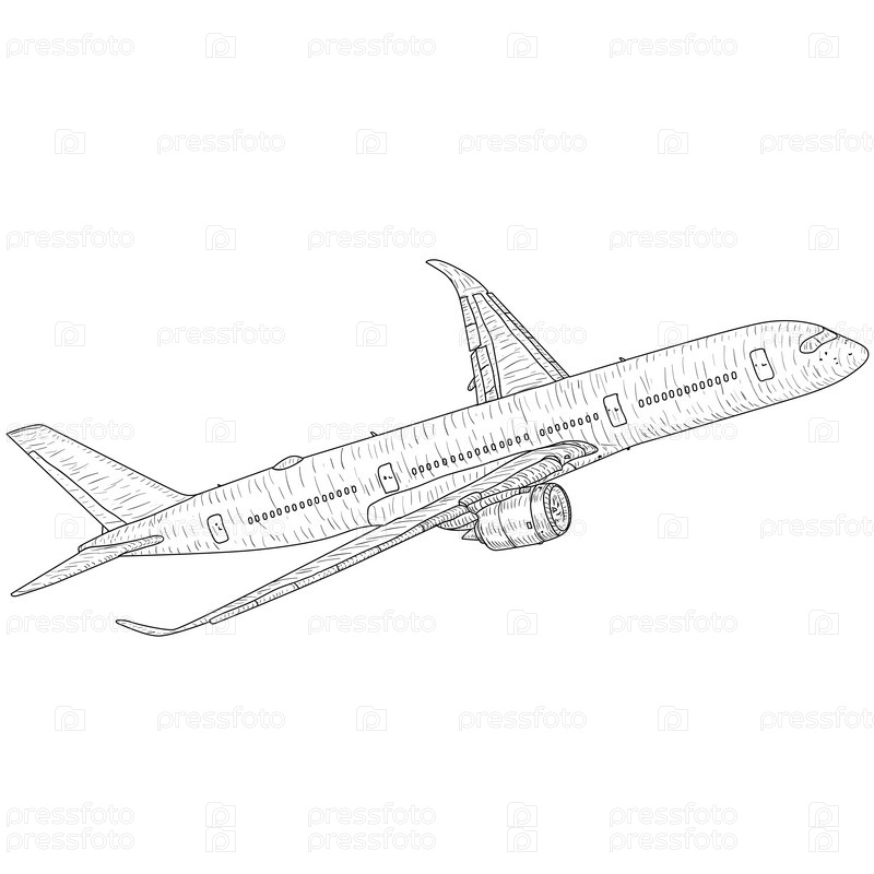 Силуэт пассажирского самолета на белом фоне