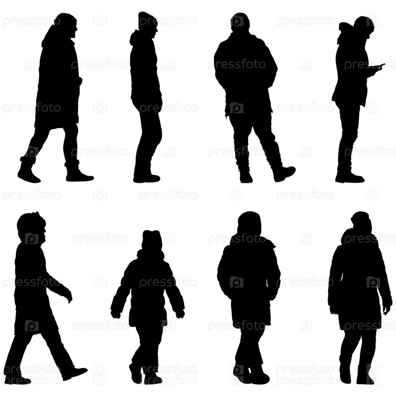 Силуэт группы людей, стоящих на белом фоне