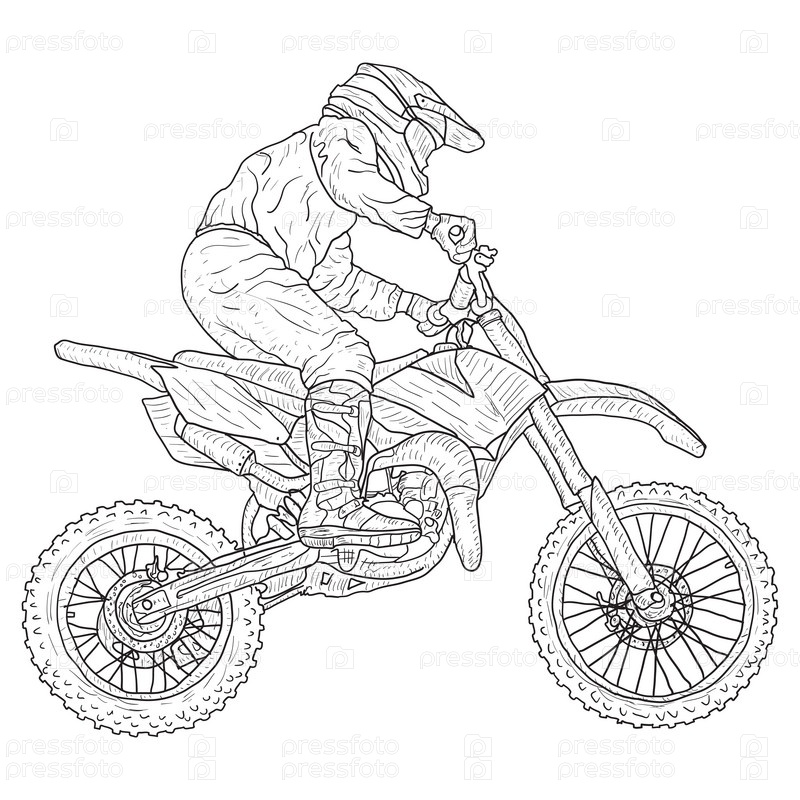 Эскиз силуэта водителей мотокросса на белом фоне