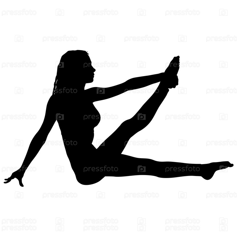 Силуэт девушки на занятиях йогой в позе на белом фоне