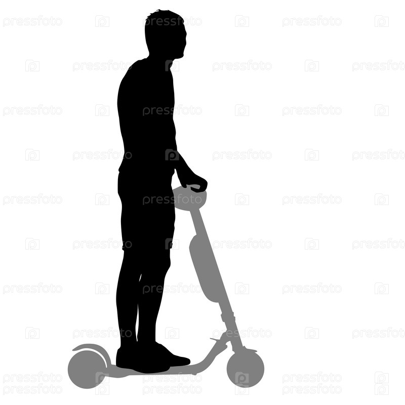 Черный силуэт мужчины на скутере, люди на белом фоне