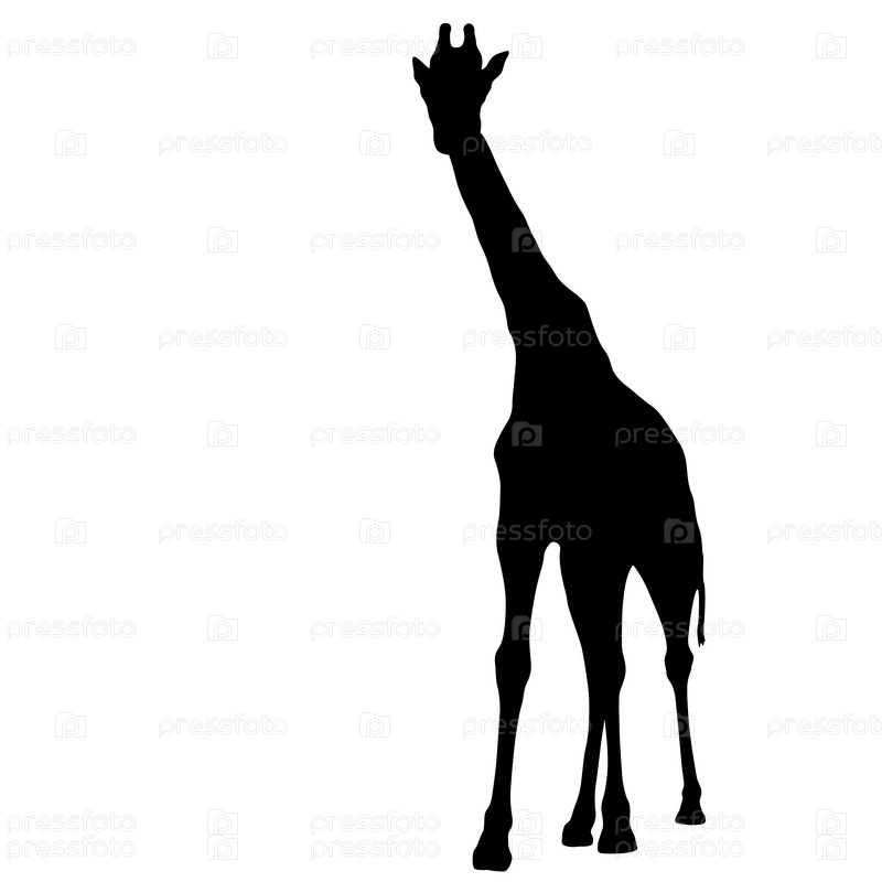 Силуэт высокого африканского жирафа на белом фоне