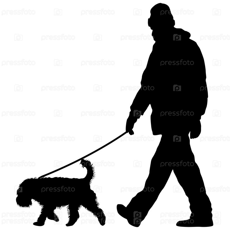 Силуэт человека и собаки на белом фоне