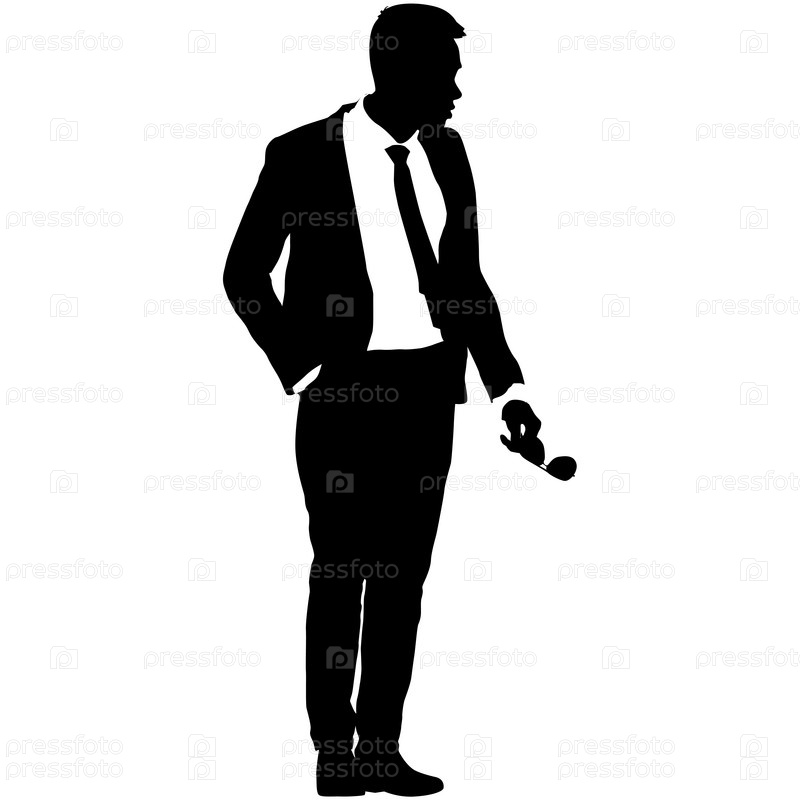 Силуэт бизнесмена в костюме с галстуком на белом фоне