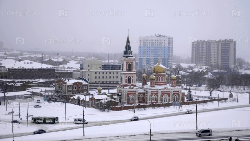 Город Барнаул, вид на город и церковь, Алтай, Россия