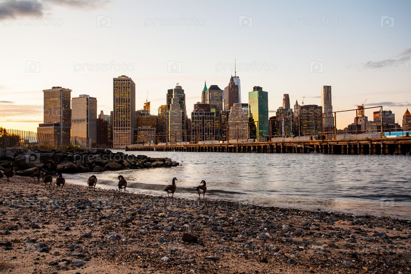 Вид с утками на Манхеттен. Нью Йорк